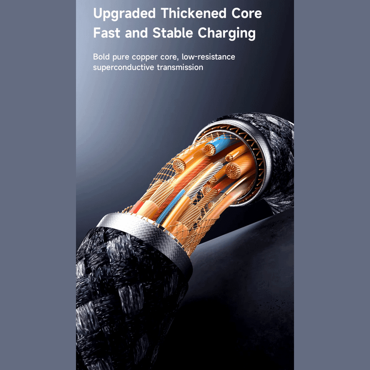 این کابل دو سر تایپ سی قابلیت شارژدهی پایدار و امن و جابهجایی اطلاعات با کیفیت بالا داشته؛ اندازه کابل 120 سانتی متر است و اندازهای مناسب برای استفاده روزانه خواهد بود. سیم شارژ از جنس ABS و نایلون بافته شده ساخته شده و کیفیت ساختار بسیار بالایی دارد و کابل آن فوقالعاده منعطف است. پوشش محافظی هم در نقطه اتصال کابل به کانکتور وجود دارد. این پوشش سخت با کاهش فشار وارده طی خمش بیشازحد، از قطع اتصالات کابل جلوگیری میکند و به این ترتیب باعث افزایش طولعمر آن میشود.