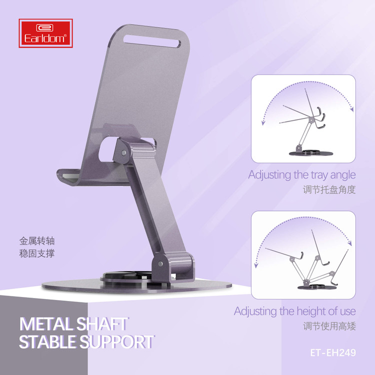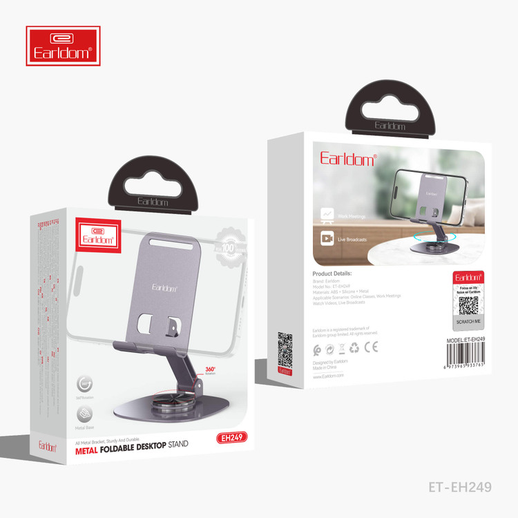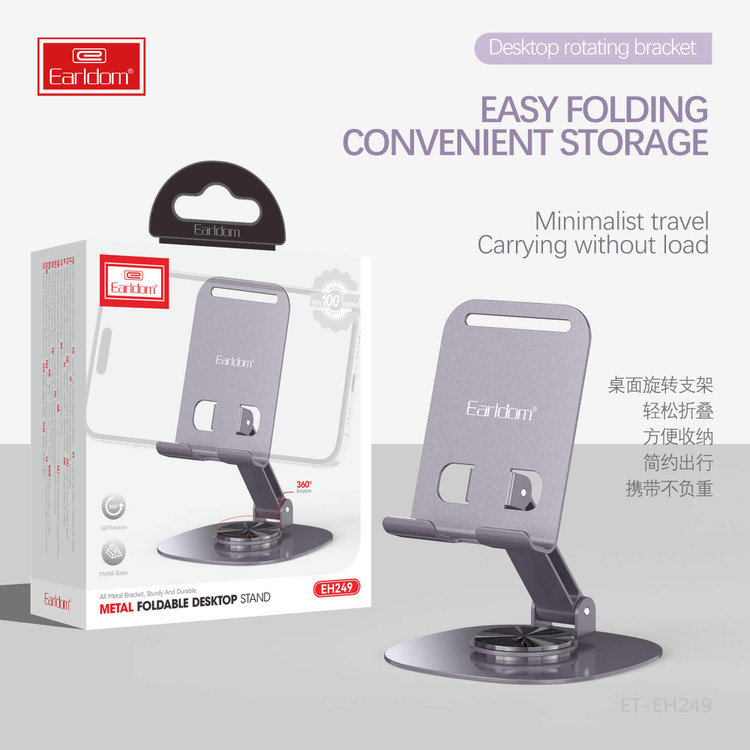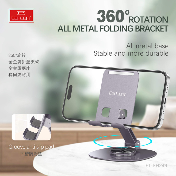 چنانچه از گوشی و یا تبلت خود برای برگذاری گلاس آنلاین یا ضبط ویدئو آموزشی و حتی ویدئو کنفرانس استفاده می کنید. داشتن یک هولدر موبایل رومیزی سبک با قابلیت نگهداری گوشی، تبلت و آیپد که توانایی تا شدن و حمل آسان را داشته باشد یک الزام است. ما در جانبی پایه فلزی تاشو Earldom ET-EH249 را به شما پیشنهاد می کنیم که از تمامی این مزایا برخوردار است.