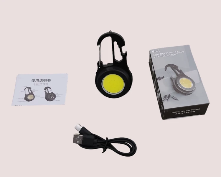 نور افکن چراغ قوه قلاب دار COB 6IN1 چندکاره جیبی مسافرتی