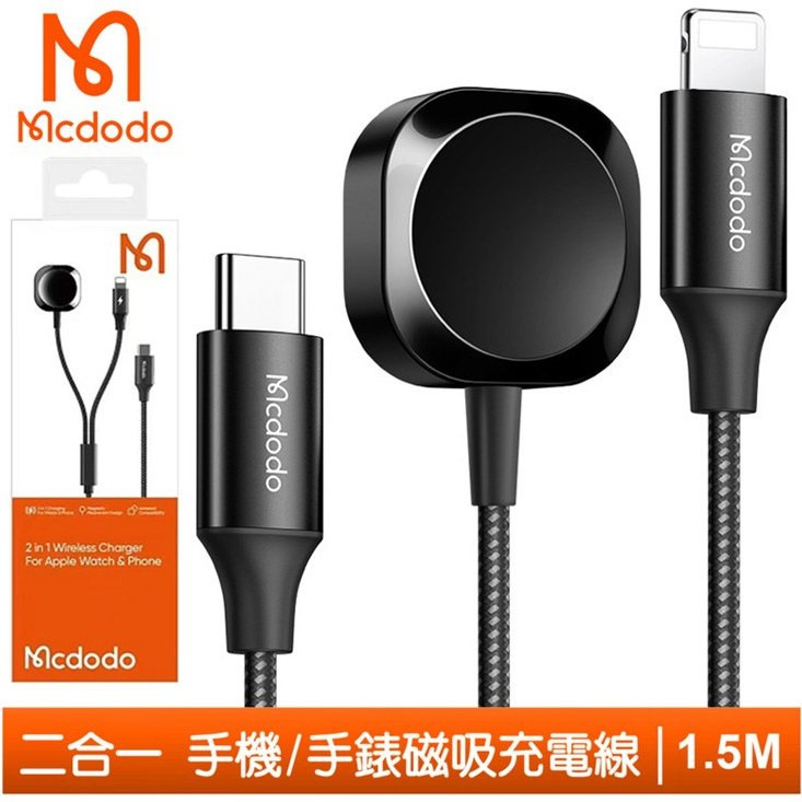 شارژر مگنتی اسمارت واچ و سیم شارژر آیفونی 1.5 متری مک دودو مدل CH-2980