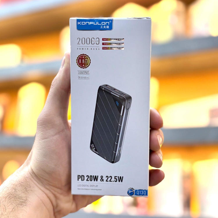 شارژر همراه کانفلون مدل Q13 ظرفیت 20000 میلی آمپر ساعت یکی از با کیفیت ترین و بهترین شارژر های همراه موجود در فروشگاه می باشد. این محصول دارای سه سوکت خروجی با شدت جریان 3 امپر و PD 20W بوده که می تواند 3 دستگاه را به طور هم زمان شارژ کند. این محصول با ابعاد مناسب ، وزن 399 گرم و جنس پلاستیک بسیار سبک و جمع و جور می باشد و به راحتی می توانید در کیف ، جیب یا ماشین خود حمل کنید. شارژر همراه کانفلون مدل Q13 ظرفیت 20000 میلی آمپر ساعت دارای باتری لیتیوم پلیمری بوده که مدت زمان شارژ ان 8 الی 10 ساعت طول می کشد و شما می توانید میزان شارژ ان را توسط یک نشانگر ببینید. از دیگر ویژگی های این محصول می توان شارژ سریع پاور بانک ، شارژ سریع تر موبایل ، شارژ ایمن ، پشتیبانی از فناوری شارژ سریع Power Delivery (PD) ، قابلیت مدیریت هوشمند شارژ و ... اشاره کرد. شارژر همراه کانفلون مدل Q13 ظرفیت 20000 میلی آمپر ساعت می تواند انواع گوشی ، تبلت و ایپد ، دوربین دیجیتال ، موزیک پلیر ها و ... را شارژ کند. با این دستگاه دیگر نگران خاموش شدن موبایل های خود نباشید و در هر زمان و مکانی گوشی های خود را شارژ کنید.