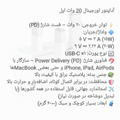 آداپتور اپل مدل 2 20W USB-C اصلی