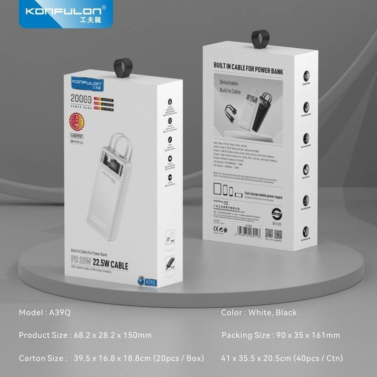 پاوربانک کانفلون مدل A39Q ظرفیت 20000 میلی آمپر ساعت