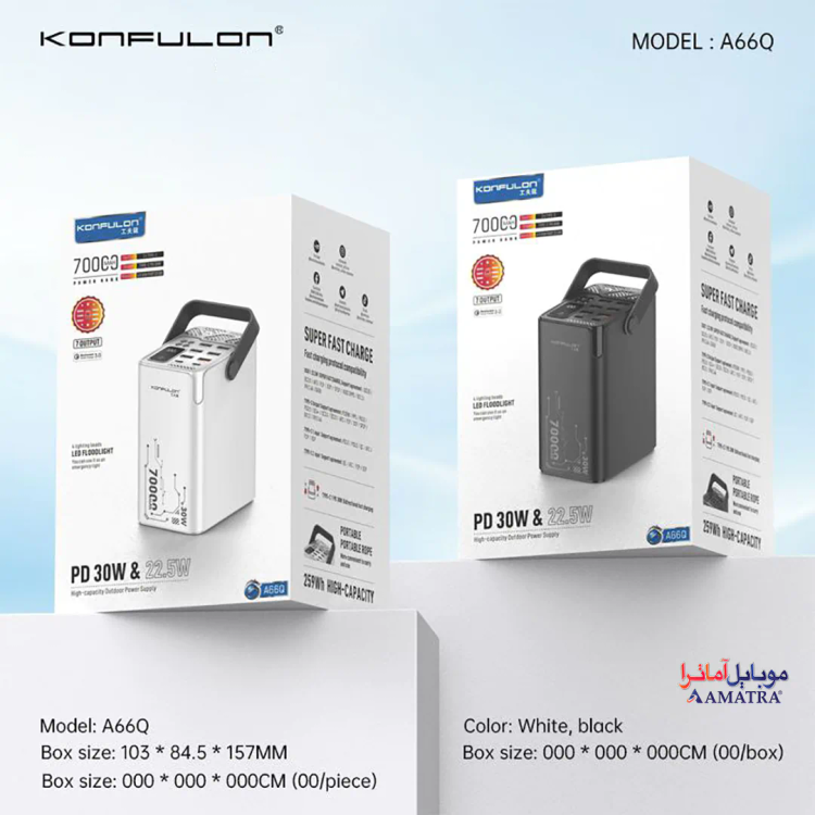 پاوربانک ۷۰۰۰۰ میلی آمپر سوپرفست شارژ ۳۰ وات مدل Konfulon A66Q منبع انرژی بیپایان برای زندگی مدرن