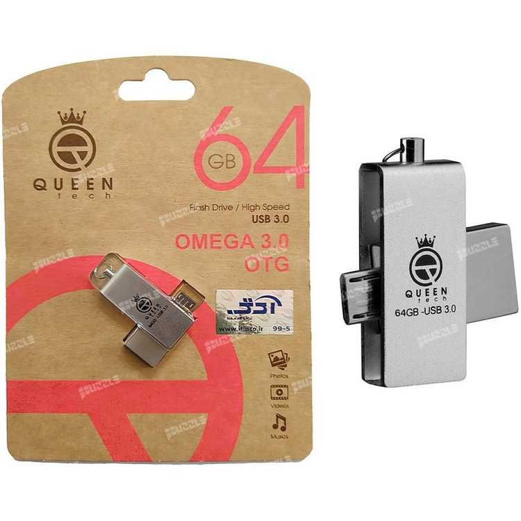 فلش مموری کوئین تک مدل OMEGA ظرفیت ۶۴ گیگابایت USB 3 OTG