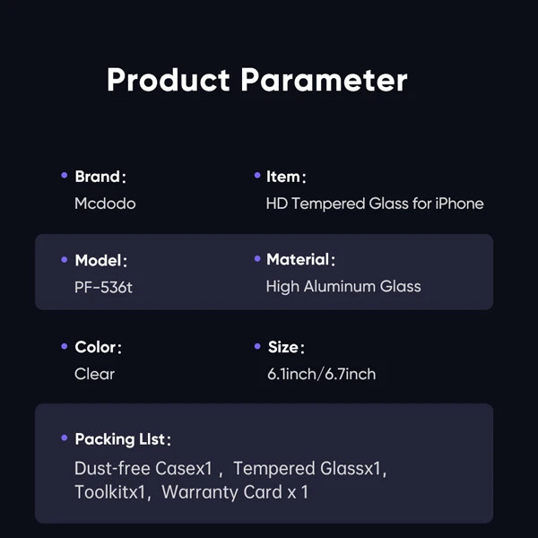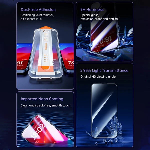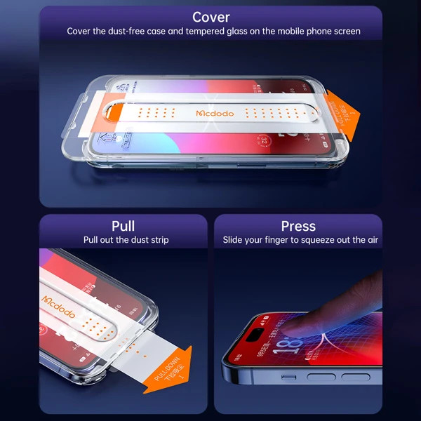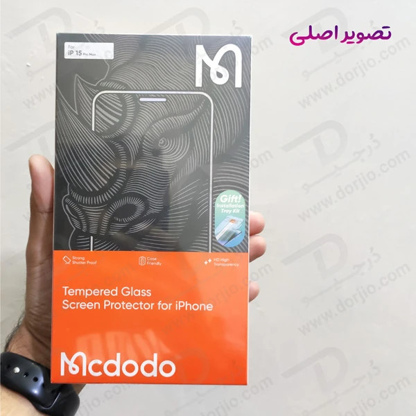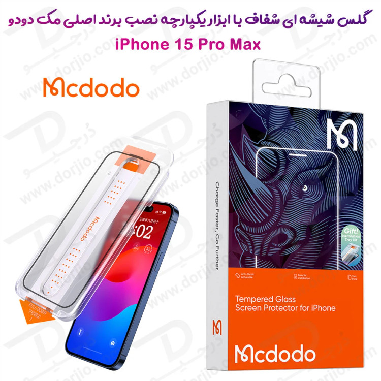 گلس شیشه ای شفاف با ابزار مخصوص نصب iPhone 15 Pro Max مارک اصلی Mcdodo