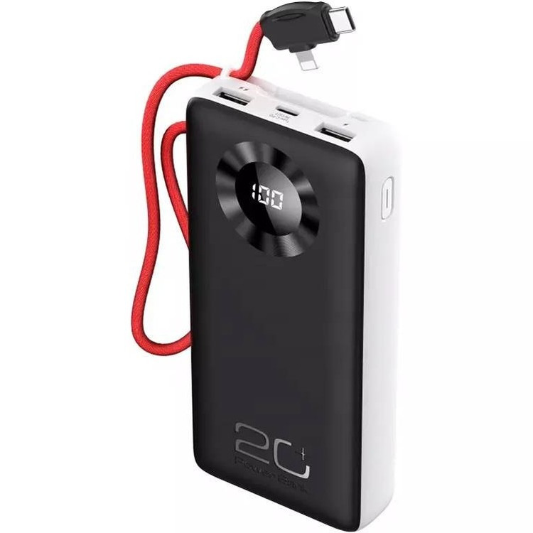 کنار بدنه پاوربانک JOKO J08 کابلی با جنس کنفی تعبیه شده که علاوه بر در دسترس بودن همیشگی کابل برای شارژ، قابلیت حمل محصول را نیز به شما میدهد. سری این کابل دارای دو سوکت Type C و Ios میباشد که شارژ کردن هرگونه دستگاهی را برای شما مقدور میکند.